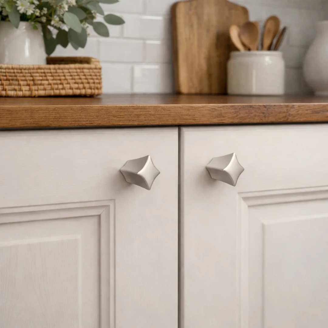 Butonii pentru mobilier Starr se remarcă printr-un design avangardist, conturat de linii curbe și o geometrie sculpturală care captează imediat atenția. Forma distinctivă, inspirată de silueta unei stele, oferă nu doar un impact vizual puternic, ci și o prindere ergonomică și o experiență tactilă plăcută la fiecare utilizare.